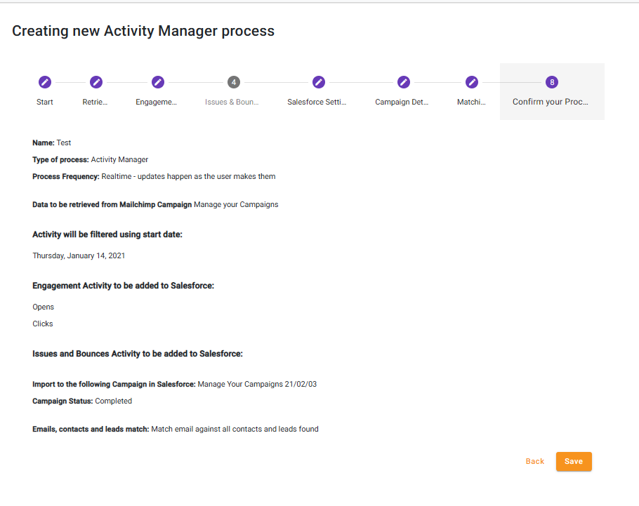 Review your process and then click on ‘save’ to run the process