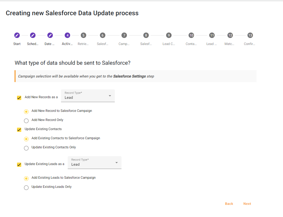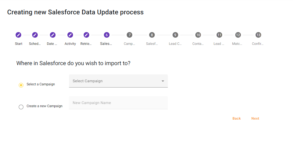 Select an existing Salesforce Campaign or create a new Salesforce Campaign