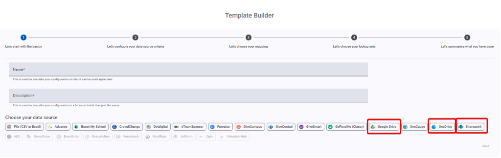 NOTE: These templates are file and data source specific, so if you start off building your template using the ‘File (CSV/Excel)’ data source and then want to place the file in Sharepoint, you will need to build your template again.