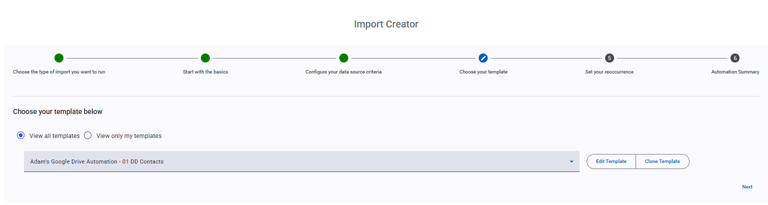 Now select the template you want your Automation to use. If you need to edit your template or clone your template, you can do so here.
