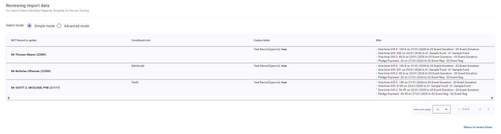 When you select the ‘Review’ button on the Import Card you, you will be taken to a summary page.