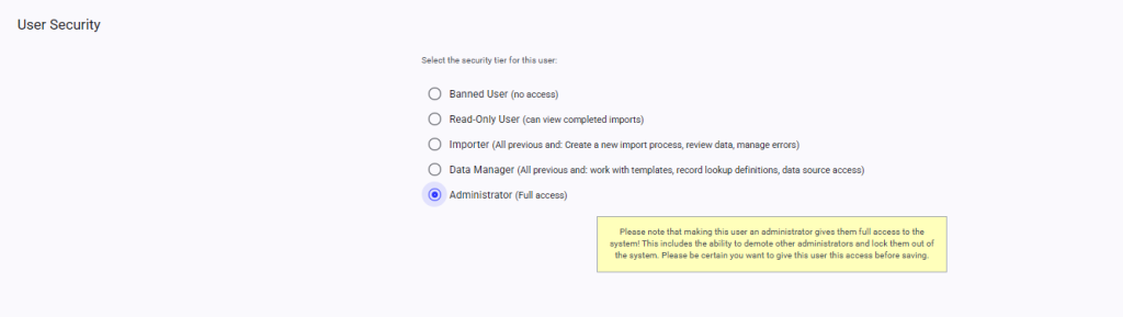 Here, you can edit the Security level for users that have attempted to log in to Importacular NXT by clicking on ‘Edit Security’: